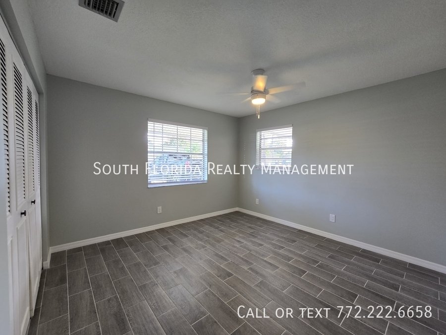 This charming unit features an open, modern kitchen with newer stainless steel appliances and plenty of cabinet storage. Located in a prime Martin County area, it offers easy access to I-95, shopping, and medical facilities. The home includes a split floor plan and a mostly fenced backyard. **Small pets welcome!**